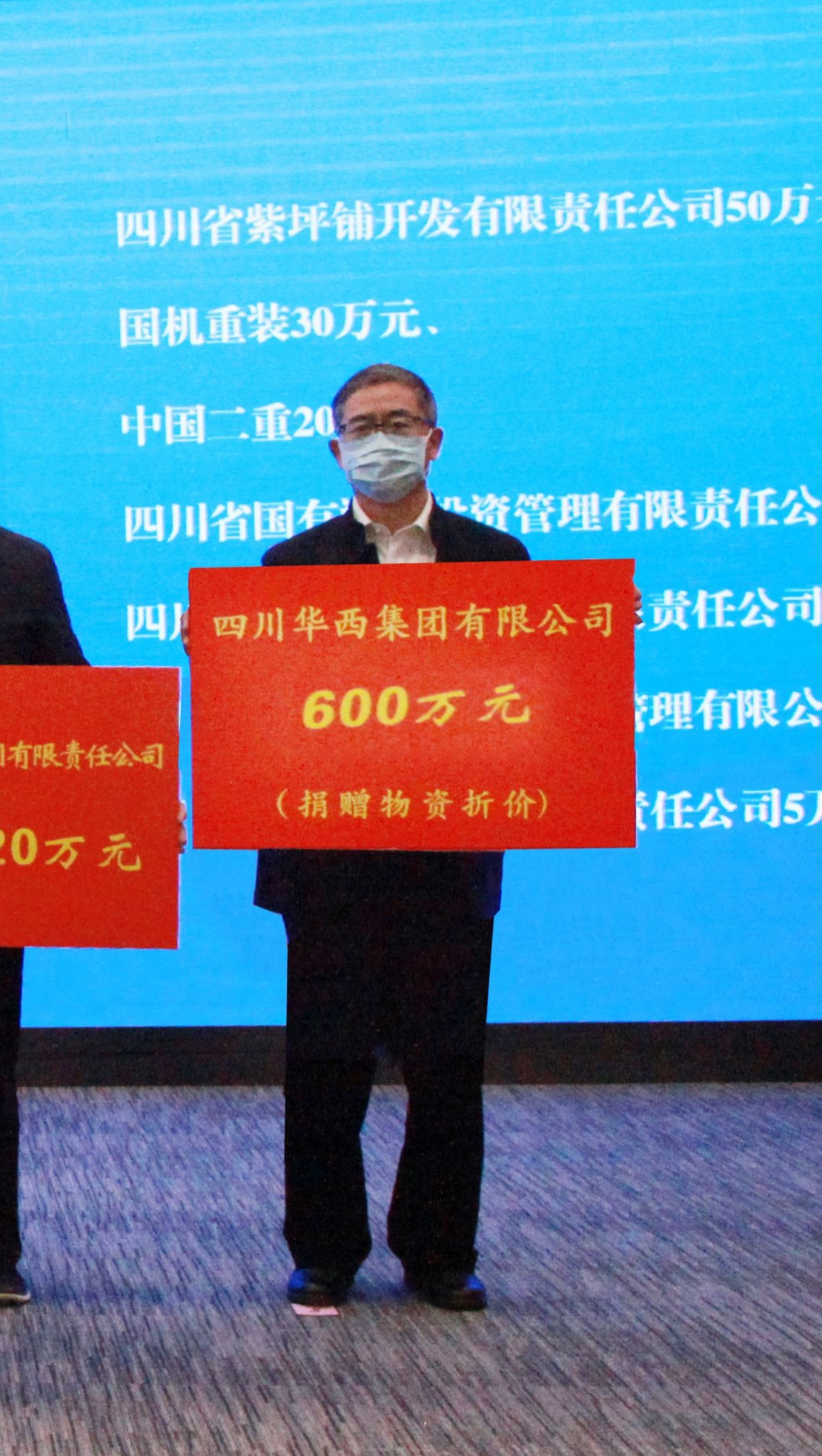 同时,华西集团还研究决定,向一线医务人员及保障型单位一线工作人员捐助各类医用口罩100万只以及防护服、护目镜、手套、测温枪等物资,总值人民币600多万元。