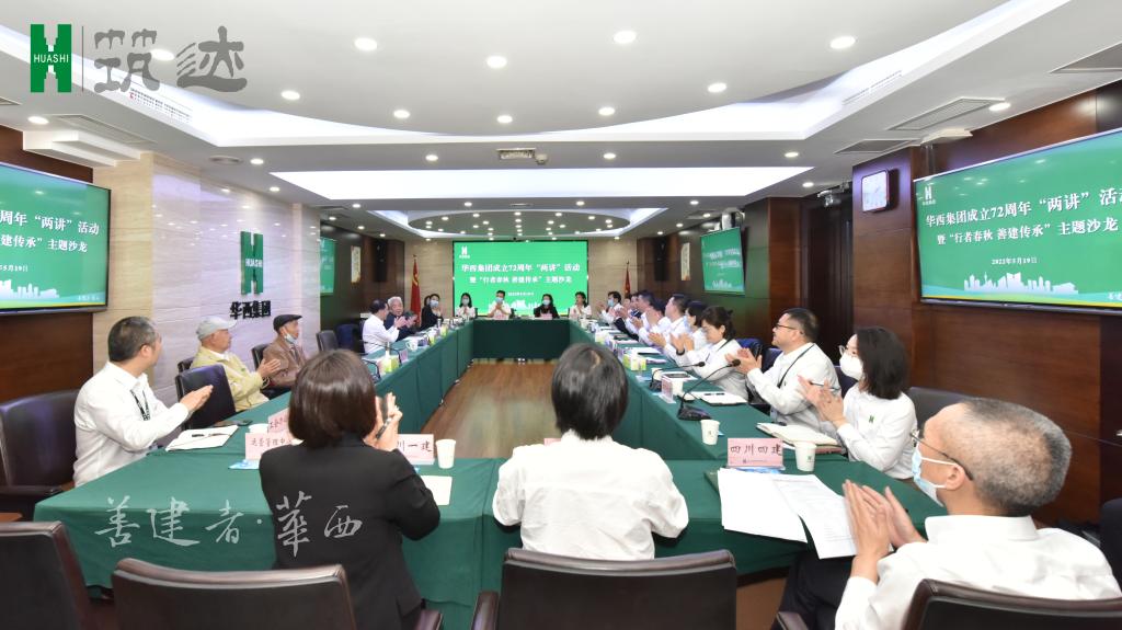 四位参与华西历史、见证华西历史的老同志代表,分别讲述了华西人善建天下、挥师南北、征战东西的故事。张代富老同志从“长春第一汽车制造厂”谈到“华西集团前身的组建”,从“参与三线建设”谈到“投身特区建设”,从“深圳体育馆的承接不易”到“高尔夫球场建设的连获好评”。他还亲切分享了“中国华西”这个名称的由来。“三个石头顶口锅,睡觉睡到山窝窝,天当帐篷地当床,一觉睡到大天亮!”这是时任西南二公司三处党总支书记侯刚一行带队参与攀枝花三线建设时的顺口溜。大家背井离乡,义无反顾的在攀枝花这片土地上奉献青春、建设繁华。王仪老同志热心社会工作、热心党务工作,在讲述中,他多次哽咽,华西的历史不能忘,华西的人不能忘。梁建平老同志在华西奋斗35年,“一日华西人,终生华西情”是他对华西深厚情感的最好印证。他还特别分享了读《行者春秋》何郝炬老人回忆录的心得,为大家带来了记忆中的华西故事。