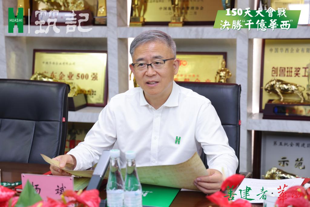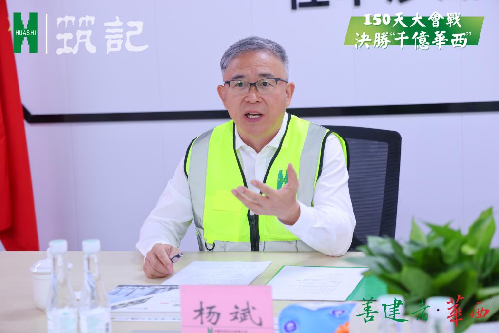 杨斌高度肯定了深圳中华西大会战以来取得的成效,表扬了公司上下团结一致、凝心聚力的会战精神,他强调,大会战不是最终目标,更是日后常态,在高质量发展赛道上要持续鼓劲,并提出了三点要求:一是全线冲锋,激发昂扬士气。坚持围绕生产大局,领导靠前指挥,亲自督导督战,把精力和资源下沉到一线,持续吹响奋斗“冲锋号”。二是随势而变,顺应市场利好。做好存量,稳住增量,开拓新量,三箭齐发,为可持续高质量发展奠定基础。顺应市场环境,做好管理体系的革新,全面强化运营水平,强化扩容市场的能力。同时,洞察房地产行业趋势,积极关注投融建市场拓展的模式,充分运用投融建抓手,提前布局建筑科技,利用好集团数字化建设科研力量,挖掘新领域的营收潜力。三是既当排头兵,也当顶梁柱。积极响应,冲刺“千亿华西”一个都不能少的要求,勇挑重担。在建项目能抢必抢,在保质保量的同时做到产值输出最大化;同时做好大业主、大客户,尤其是政府客户的拓展和维护。在确保完成年度目标的同时,为集团整体目标的实现多做贡献。