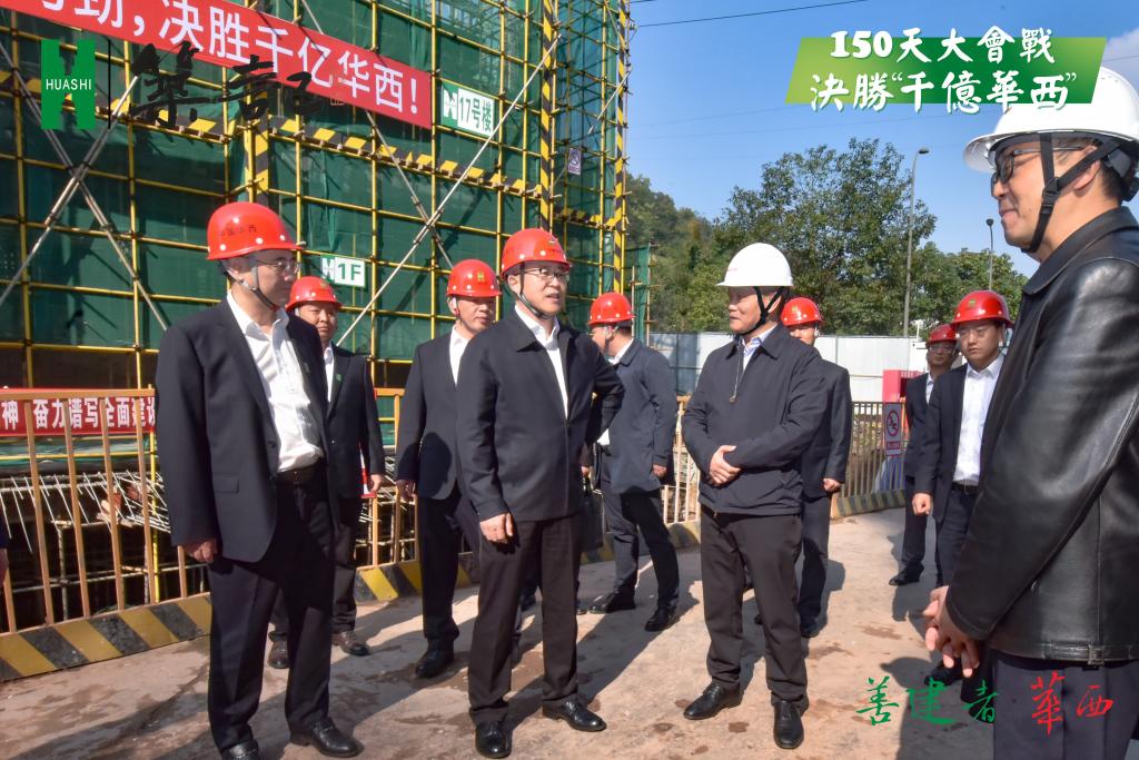 杨斌与李春模一同走进雅职院项目施工现场,一边查看施工进度,一边交流项目情况。雅职院项目是雅安地区产教融合的标杆工程,面对9月新生入学的重要节点,项目自8月开始,克服重重困难,集中抢建学生宿舍楼,通过优化施工方案、夜间抓紧清理工作面,最终提前达成交付节点,确保9月新生顺利入住。目前,13栋教职工楼正在紧锣密鼓建设之中,预计明年年中交付。杨斌感谢雅职院对华西的信任与支持,他说雅职院项目业主可靠、资金到位、条件具备、磨合充分,项目团队要“打硬仗、得荣誉、树品牌”,加快进度,抢抓产值,为雅职院“双高”建设贡献华西力量。
