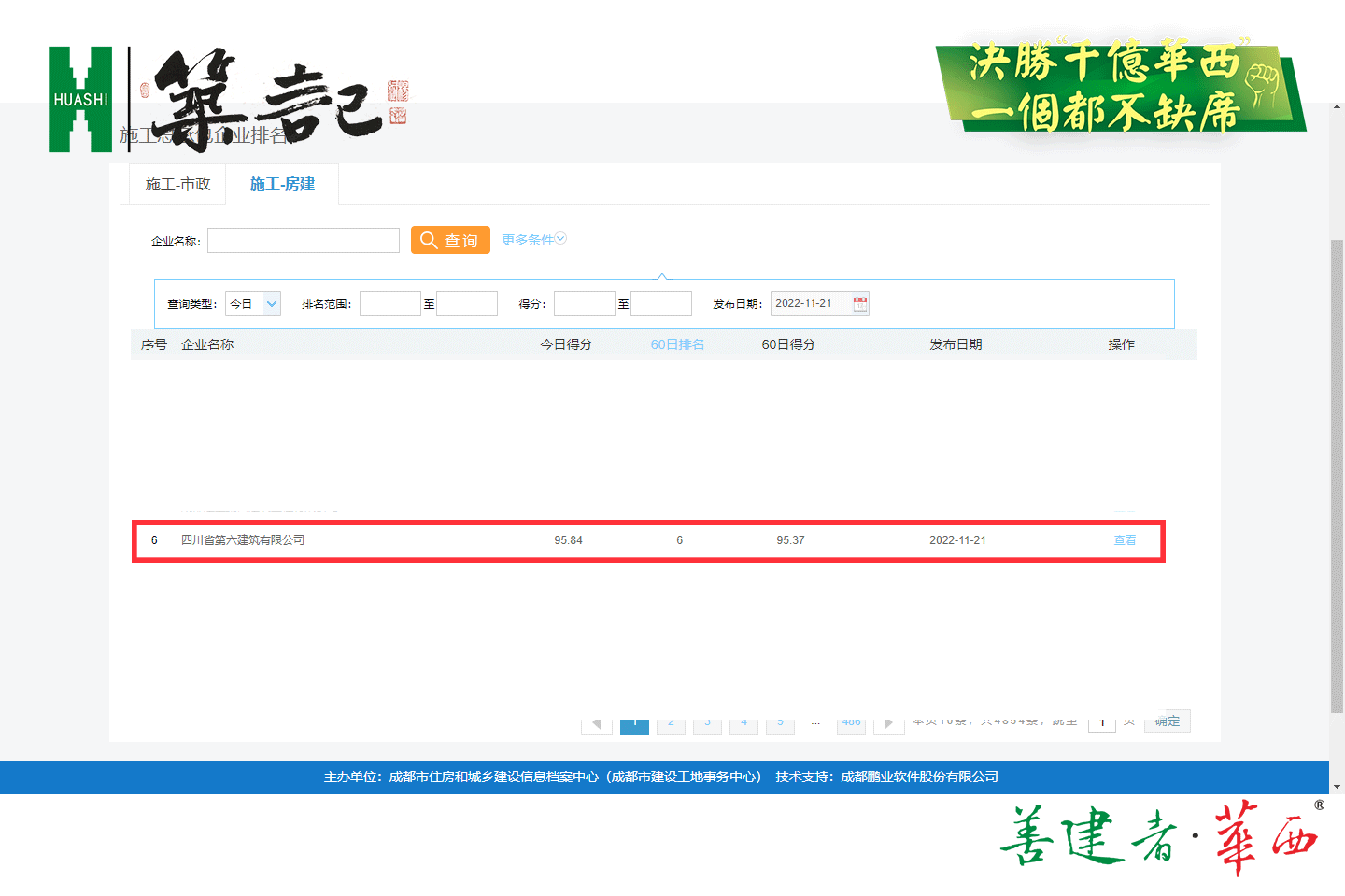 ▲四川六建在全市所有房建和市政施工建筑企业中,分列第6名和第10名