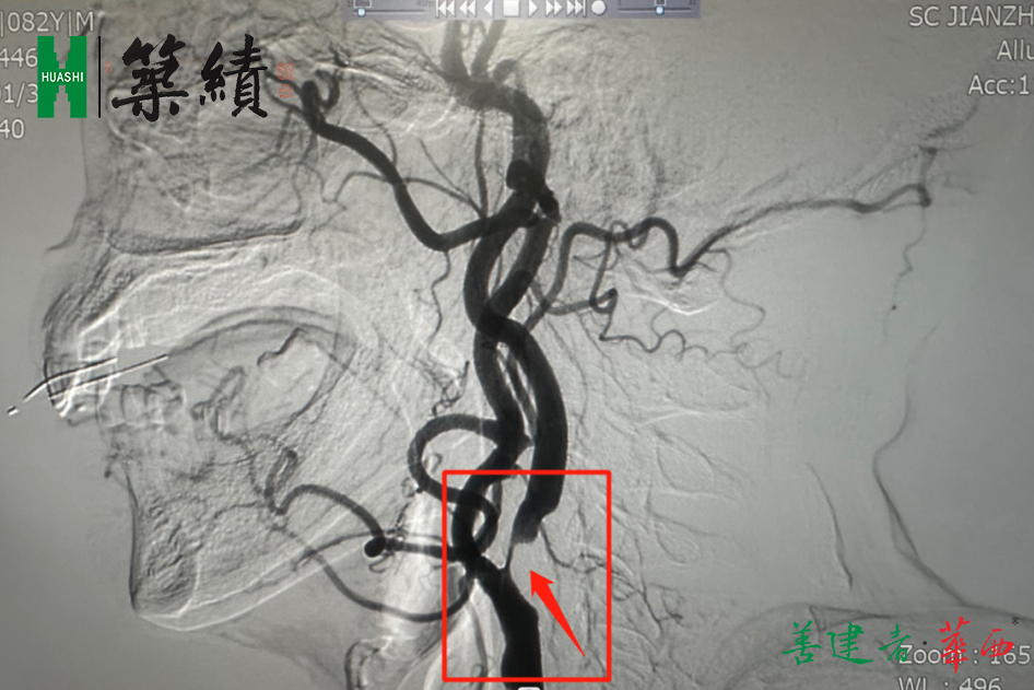 ▲颈动脉狭窄行脑血管造影术
