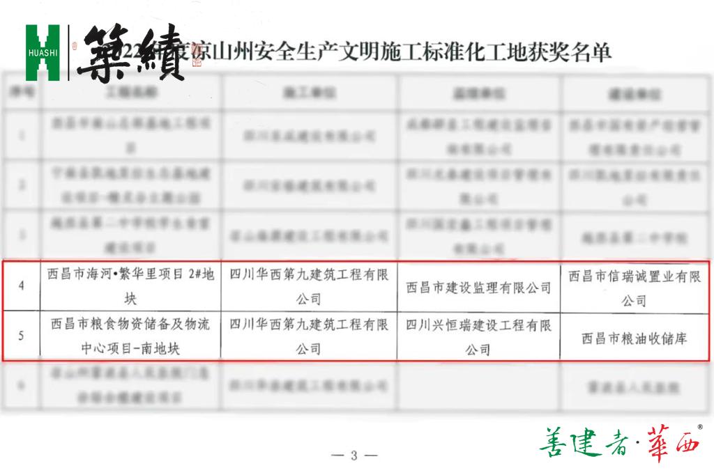 西昌市海河·繁华里项目2#地块、西昌市粮食物资储备及物流中心项目(南地块)上榜“2022年度凉山州安全生产文明施工标准化工地”;越西中学二期工程建设项目设计-采购-施工(EPC)获“天府杯”银奖;中国新闻网、凤凰网、腾讯网、凉山日报等多家媒体集中报道华西九公司会东县建制镇生活污水处理设施项目建设进展。