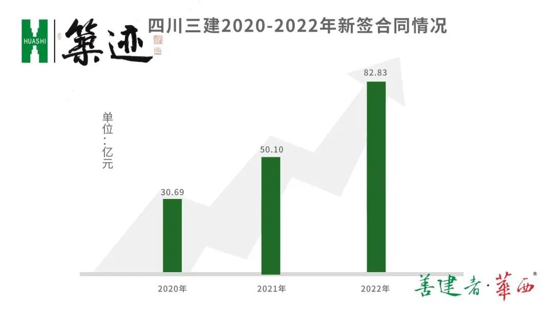 四川三建用等不起,慢不得,坐不住的紧迫感锐意进取,从抢抓市场,推动生产经营回升;到改革创新,赋能高质量发展;再到深挖潜力,开拓区域发展新路径,四川三建在逆境中崛起,各项经济指标稳步提升,新签合同额从2020年30.69亿元,增长至2022年的82.83亿元,环比增长率达169.8%。2022年提前54天完成年度产值目标!