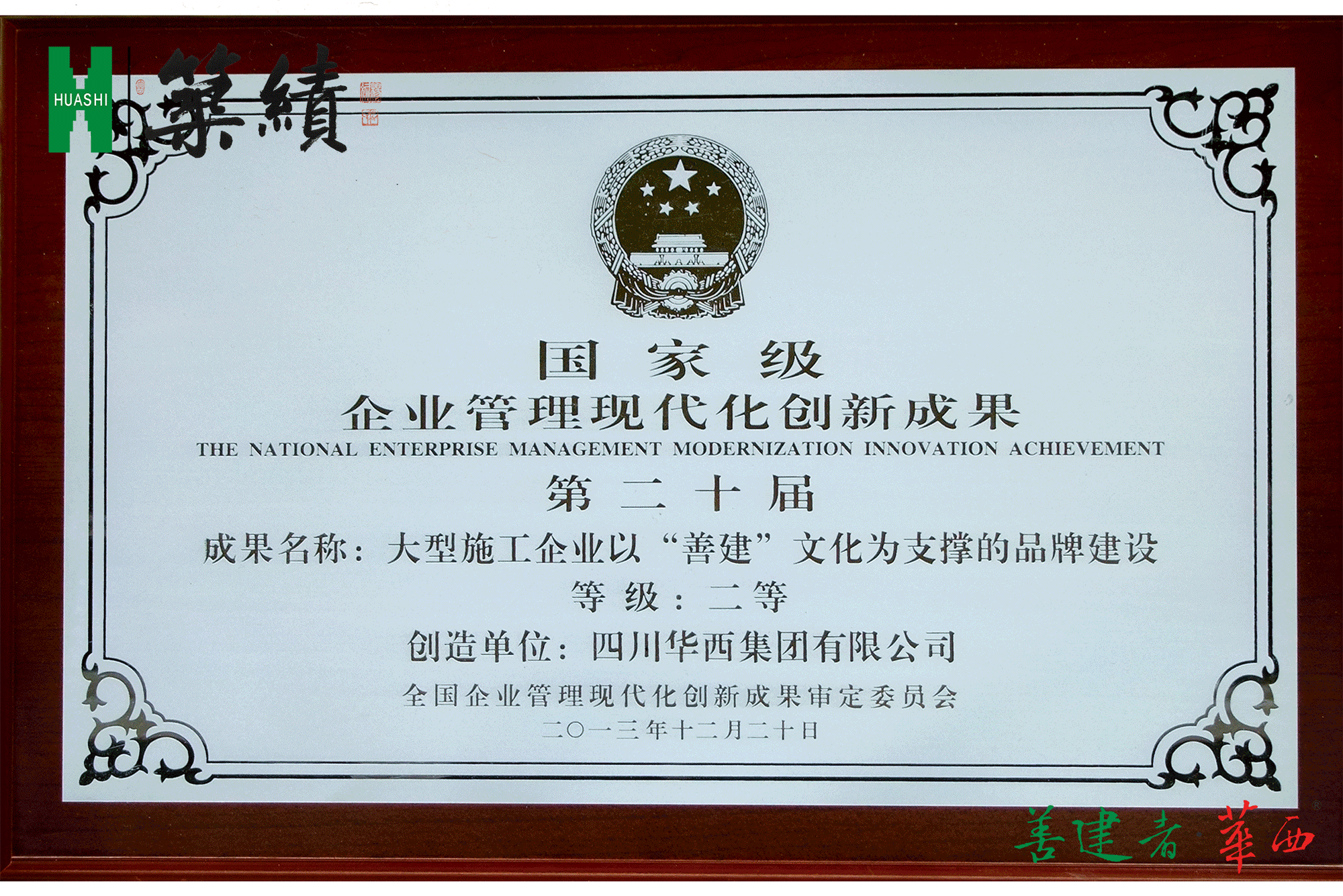 据悉,国务院国资委此次在全国范围征集国资国企品牌建设优秀经典案例,华西集团是四川省唯一一家入选获评的省属国企。华西“善建”文化先后获得全国企业现代化管理创新成果二等奖、四川省企业现代化管理创新成果一等奖,华西也获评全国建设系统企业文化建设示范单位、全国企业文化建设典范企业等荣誉称号。