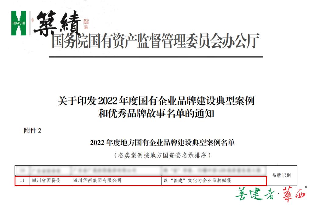 近日,国务院国资委公布了2022年度国有企业品牌建设典型案例和优秀品牌故事。华西集团企业文化建设成果——《以“善建”文化为企业品牌赋能》成功获评。