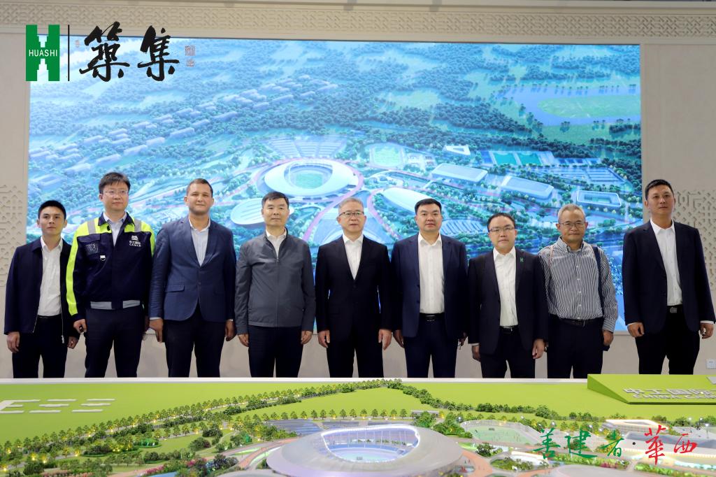 次日清晨,塔市秋高气爽,阳光明媚。在刘生承和乌兹别克斯坦建设部与商务部外事司司长安瓦尔陪同下,杨斌观摩了乌兹别克斯坦奥林匹克城项目展厅宣传片和BIM演示,听取了中工国际第五事业部副总经理、项目总负责人郭子杰的专题汇报。随后,在项目主场馆施工现场察看了安全、质量、进度情况。中工国际领导、项目管理层和乌兹别克斯坦建设部奥林匹克城项目驻场协调官,均对华西团队的高质量、高水平管理十分满意,表达了充分的肯定。