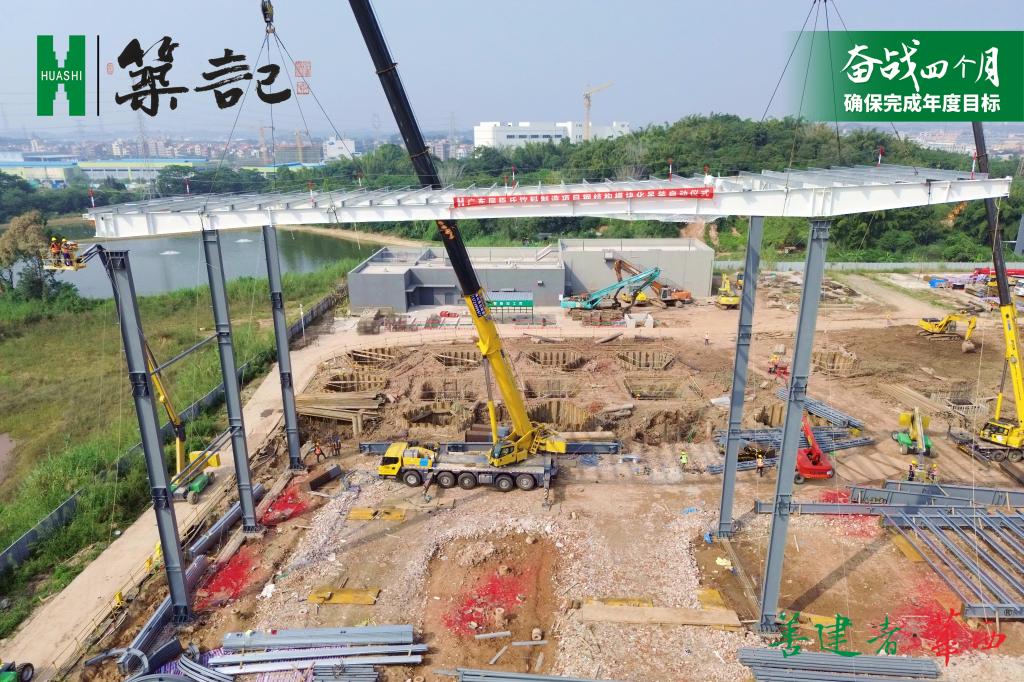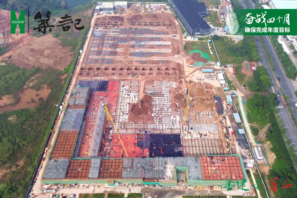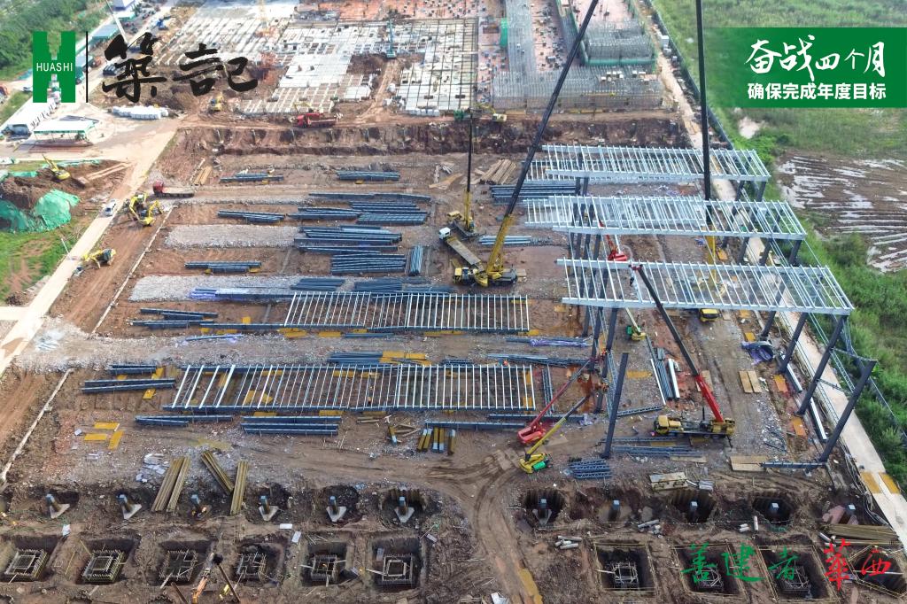 目前,生产车间基础建设已完成约95%,主体已完成约75%,立体仓库钢结构吊装完成约75%,超额完成阶段施工任务约15%。