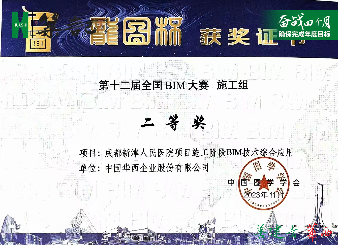 此套BIM建设团队先后获得2023第十二届“龙图杯”全国BIM大赛二等奖、第六届“优路杯”全国BIM技术大赛金奖、第三届“新基建”杯中国智能建造及BIM应用大赛一等奖、四川省BIM技术大赛二等奖等BIM技术应用佳绩。