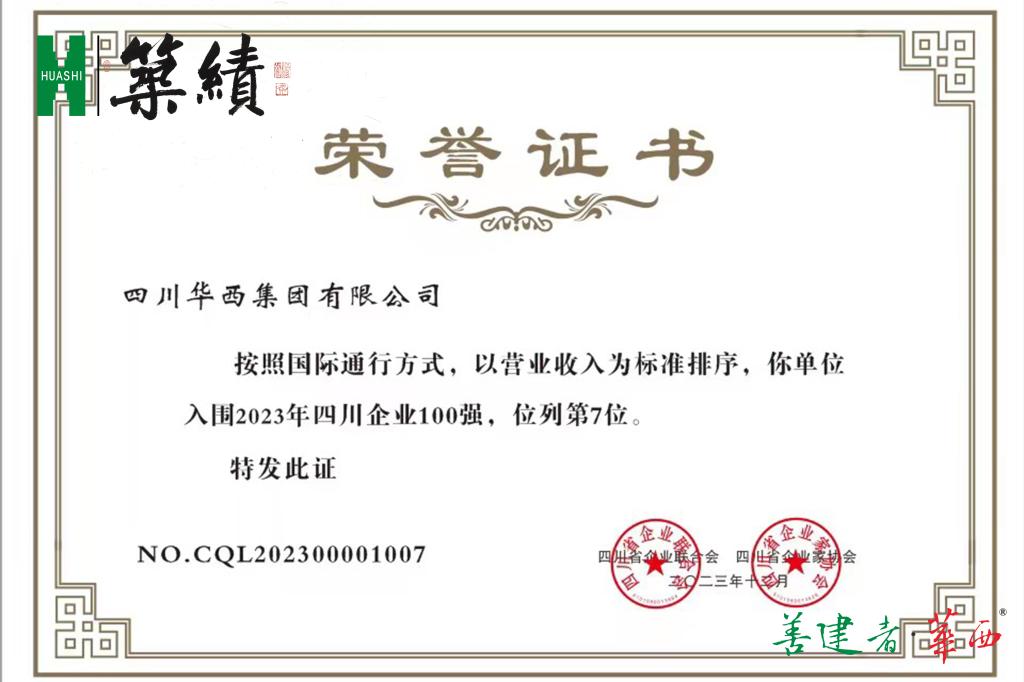 12月27日,四川省企业联合会、四川省企业家协会联合发布“四川企业100强”。十大网投正规信誉官网以营业收入1005.5680亿元位列第7,连续19年上榜,再次荣登四川建筑企业之首。