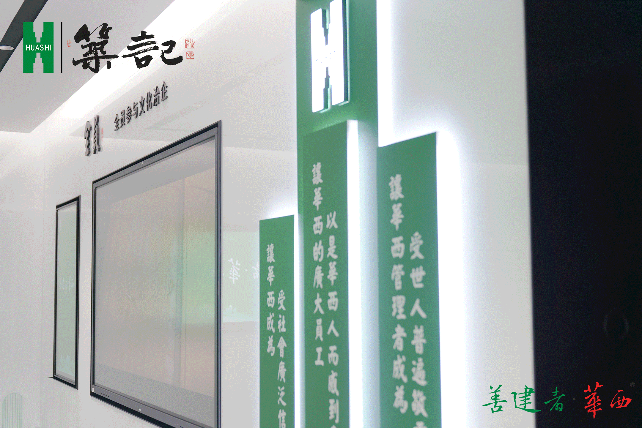 展示馆位于华西集团总部大楼一楼,占地近80平米。馆内设有8块多媒体屏幕,以15支短片讲述华西“四全”故事。三段珍贵历史影像,回顾华西“全程参与新中国建设”不同历史时期;首次采用沉浸式空间3D全息投影技术,身临其境感受“全域拓展市场空间”的伟大“筑迹”;“全链打造产业形态”展区突出华西“建筑全产业链”在行业内的竞争优势;“全员参与文化治企”展区,溯源善建文化,传递“成果共享”的治企理念;此外,馆内还准备了千人千面汇聚而成的善建者幸福拼图,作为彩蛋等您前来对号入座。展馆开放后,将服务于集团各中心(部、室)、各单位的参观交流活动。