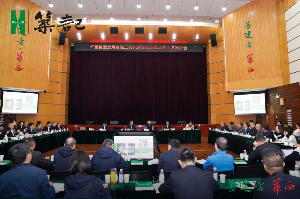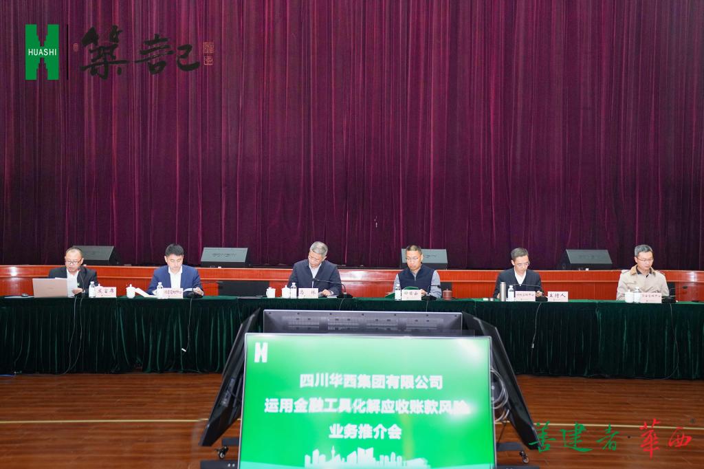 华西金控主要领导作推介发言,华西金控保理公司负责同志介绍了应收端保理业务,四川四建六分公司相关负责同志分享了川商总部项目办理有追索权保理业务的经历。