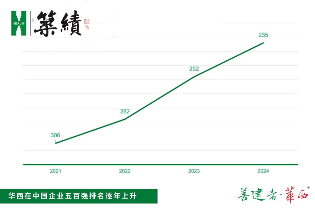 “中国企业500强”由中国企业联合会、中国企业家协会评选发布,企业上一年度财报营收是最为关键的评价指标。榜单发布23次以来,华西连年上榜。近4年来,华西榜单排名显示,2021年排名306位,2022年排名282位,2023年排名252位,2024年排名235位。四年位次晋升71位。