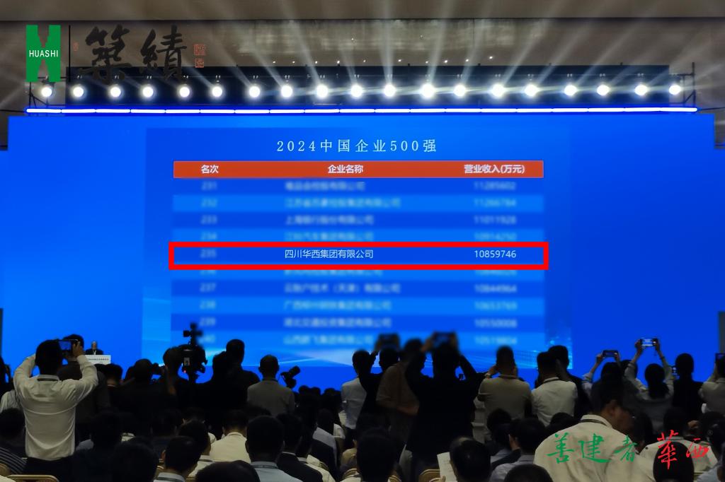9月11日,2024中国企业500强榜单出炉,华西集团以10859746万元的营收业绩排名第235位,位列四川建筑企业之首。连续4年,华西在榜单上的排名持续向上,榜单位次相较2021年,晋升71位。
