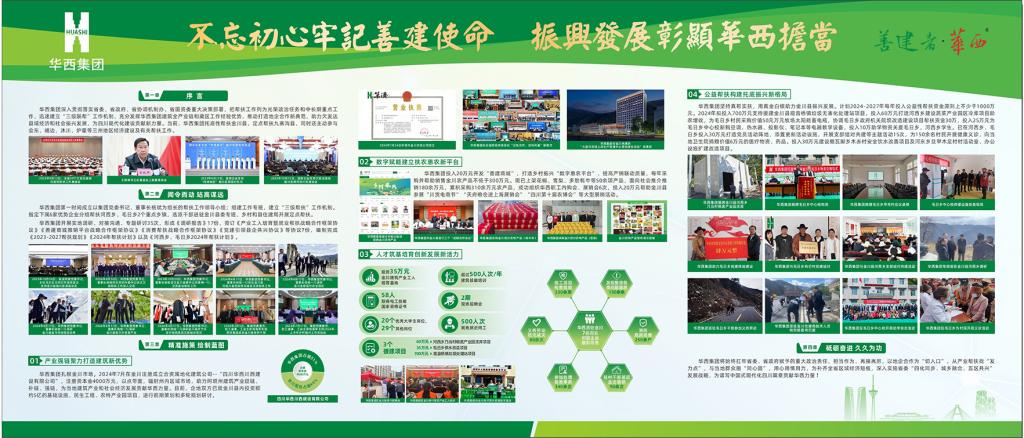 华西集团领受“托底性帮扶金川县”这一光荣任务以来,迅速建立“三级联帮”工作机制,集团“建筑全产业链”优势和民族地区工作经验双向发力,打造“产业帮扶”、“数字赋能”、“人才培优”、“公益帮扶”等系列帮扶模式。现已在金川成立合资属地化建筑公司——“四川华西川西建设有限公司”,注册资本金4000万,旨在帮助当地建筑产业建优建强。投资20万,打造“数字惠农平台”,采购帮销农副产品300余万,其中包括今年7月四川部分地区遭遇自然灾害后,金川县滞销的部分花椒。投资35万打造金川县建筑产业工人培育基地,带动就业500余人次。投入公益帮扶资金1000余万,用于当地垃圾处理站、蔬菜基地、基础设施管线改造、教育设施等民生工程建设。