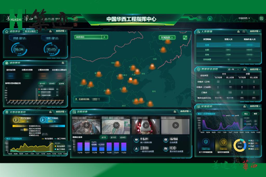 智慧工地监测集成技术。华西“两把刀”之一,解决人员精细管理、机械自动化管理、远程巡检调度等重难点问题,已广泛用于全国1000余个工程项目。