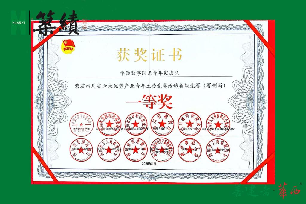 1月8日,华西集团华西数字阳光青年突击队,在四川省六大优势产业青年立功竞赛活动省级竞赛中,从全省900余支队伍中崭露头角,荣获全省一等奖。华西的这支青年突击队还被作为优秀案例在全省进行路演推广。