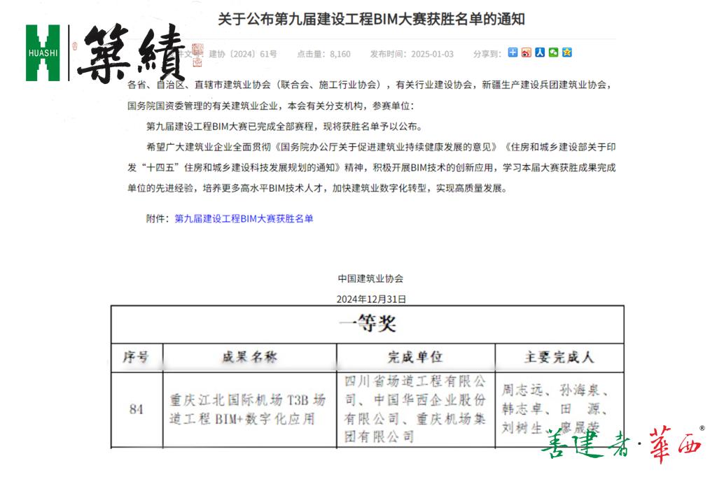 近日,喜报从首都传来,股份公司、四川场道凭借在重庆江北国际机场项目的“BIM+数字化应用”,在中国建筑业协会主办的“第九届建设工程BIM大赛”中脱颖而出,荣获一等奖。