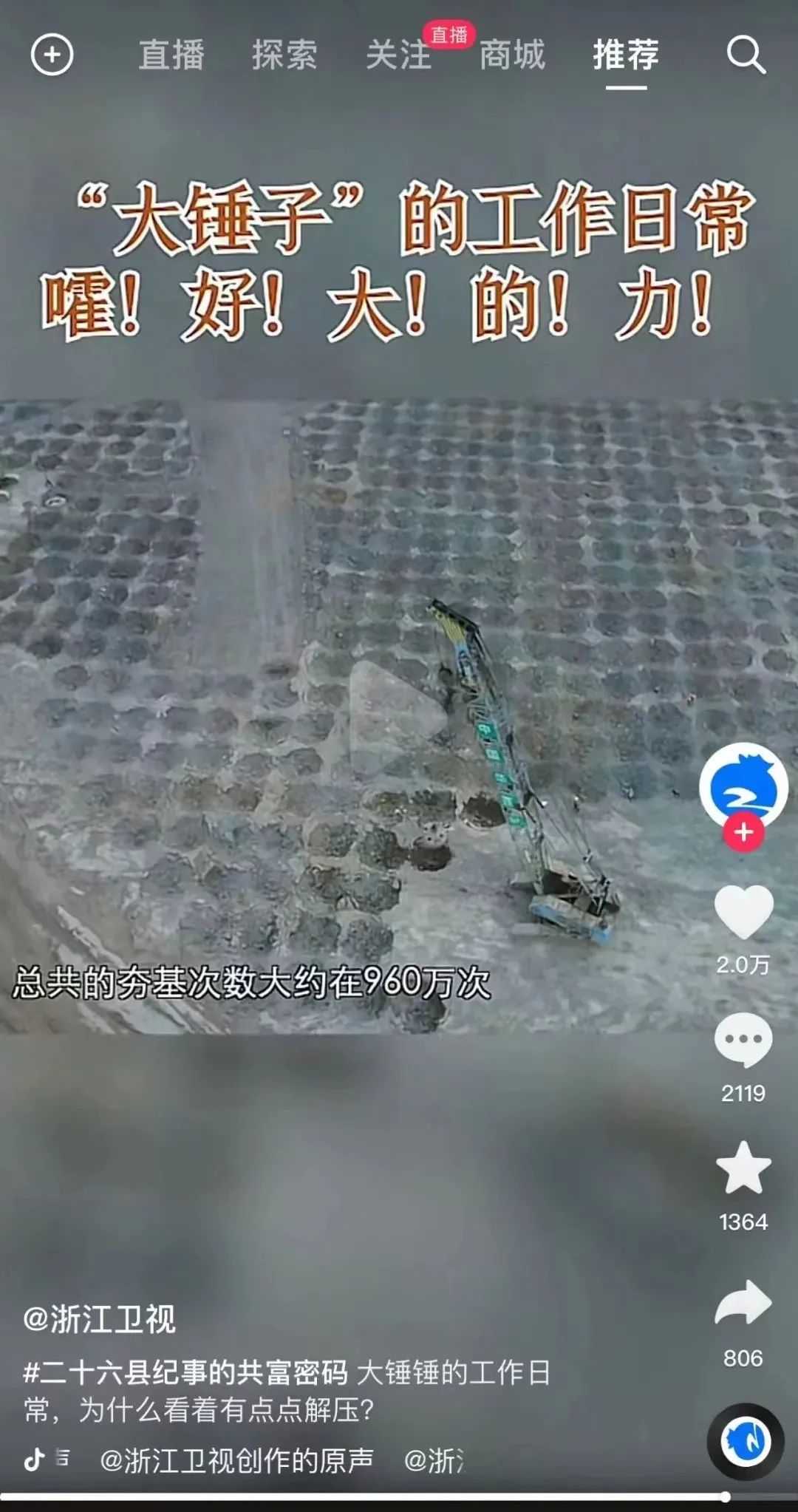 在纪录片中,随着镜头从绵延起伏的崇山峻岭转向热火朝天的施工区域,偌大的“中国华西”标识出现在画面中央。一锤又一锤,真实记录了一层一层夯铺碾压的施工场景,展现了善建者一线大干快上、火力全开的建设风采。同时,该片还详细介绍了丽水机场地理环境、施工重难点、建设情况和航运意义等,赞扬称“工程的建设者们用智慧和科技实现了现实版愚公移山。”