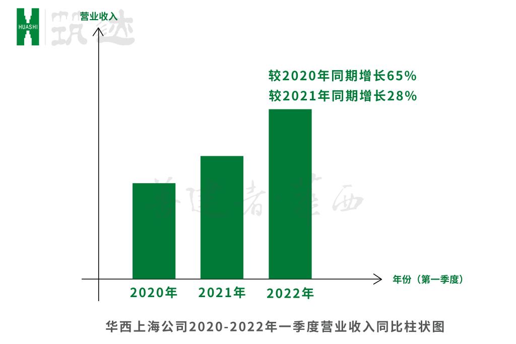 开年一季度,华西上海公司一手抓抗疫,一手抓市场,稳住了增长形势,2022年1月至3月新签合同2.5亿元,营业收入1.98亿,较去年同期增长28%,较2020年同期增长65%。同时,华西上海公司在业务结构调整中也初见成效,新承接的厂房、公建项目、装饰业务,在一季度新签合同总量中占比已达77%。