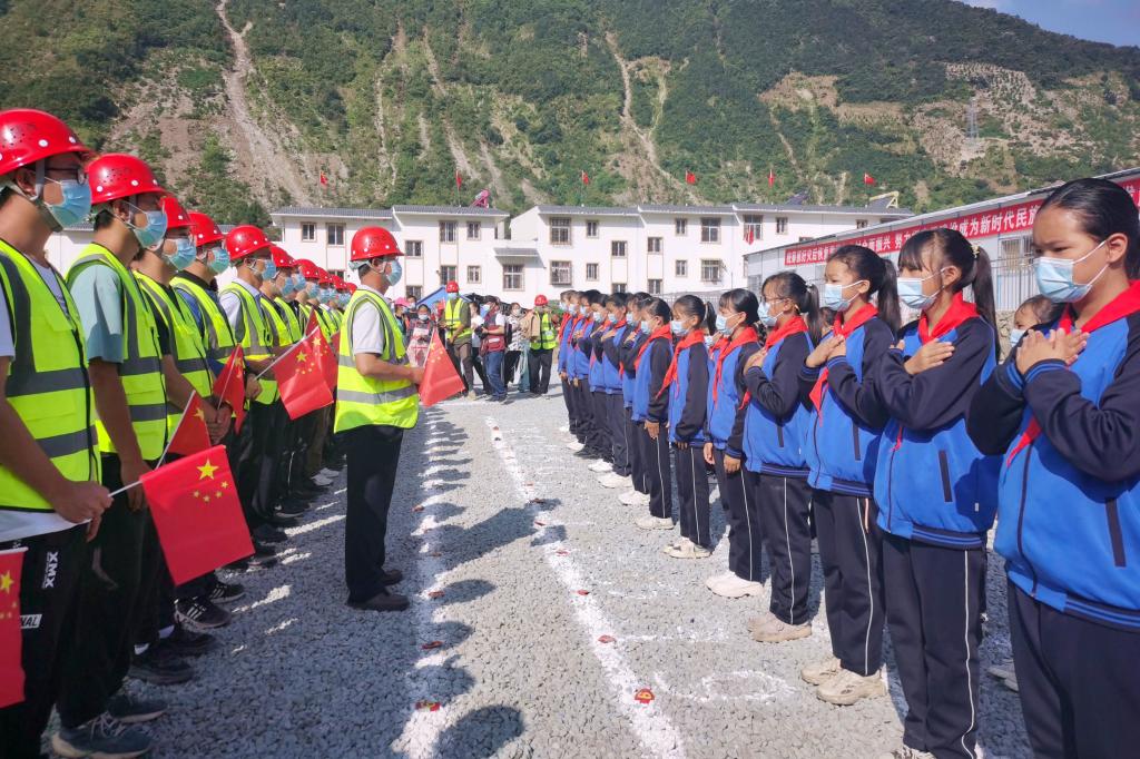 10月1日,在甘孜州泸定县繁荣村得妥1号、2号过渡安置点广场,当地政府、安置群众、华西建设者共同举行了国庆升国旗仪式。甘孜州州委书记沈阳,州委州政府、泸定县相关负责同志出席活动,中国华西四川机司总经理蒋延强,得妥1号、2号过渡安置点参建员工代表与喜迁新居的“9·5”泸定地震900余名受灾群众代表共同参加活动、喜迎国庆。