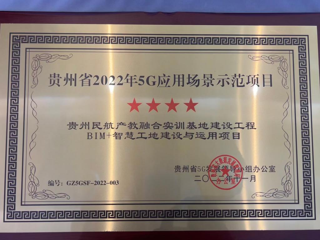 11月16日,由贵州省大数据发展管理局、贵州省通信管理局举办的贵州省 2022年5G应用场景观摩会(第一场)在贵阳市举行。会上,贵州民航产教融合实训基地建设工程“BIM+智慧工地”项目获评成为贵州省第一批5G应用场景示范项目,是贵州省建筑行业首个获此认证的单位。