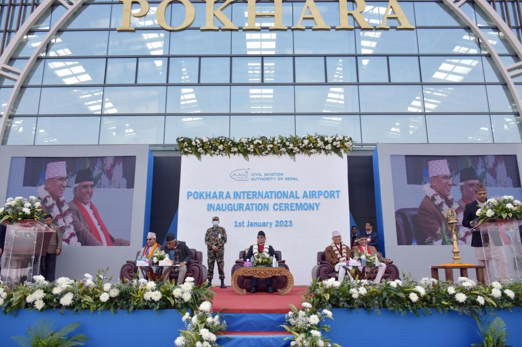 2023年1月1日元旦佳节到来之际,随着由Buddha air航空公司执飞的A320型客机首飞航班,从加德满都特里布万国际机场起飞,于12时48分降落在博克拉国际机场,通过民航最高礼仪“水门礼遇”后,标志着由中国华西四川机司参建的尼泊尔博克拉国际机场正式移交并投入运行。尼泊尔总理普拉昌达、中国驻尼泊尔大使馆代办王欣出席通航典礼,中尼双方各界政商见证机场交接。