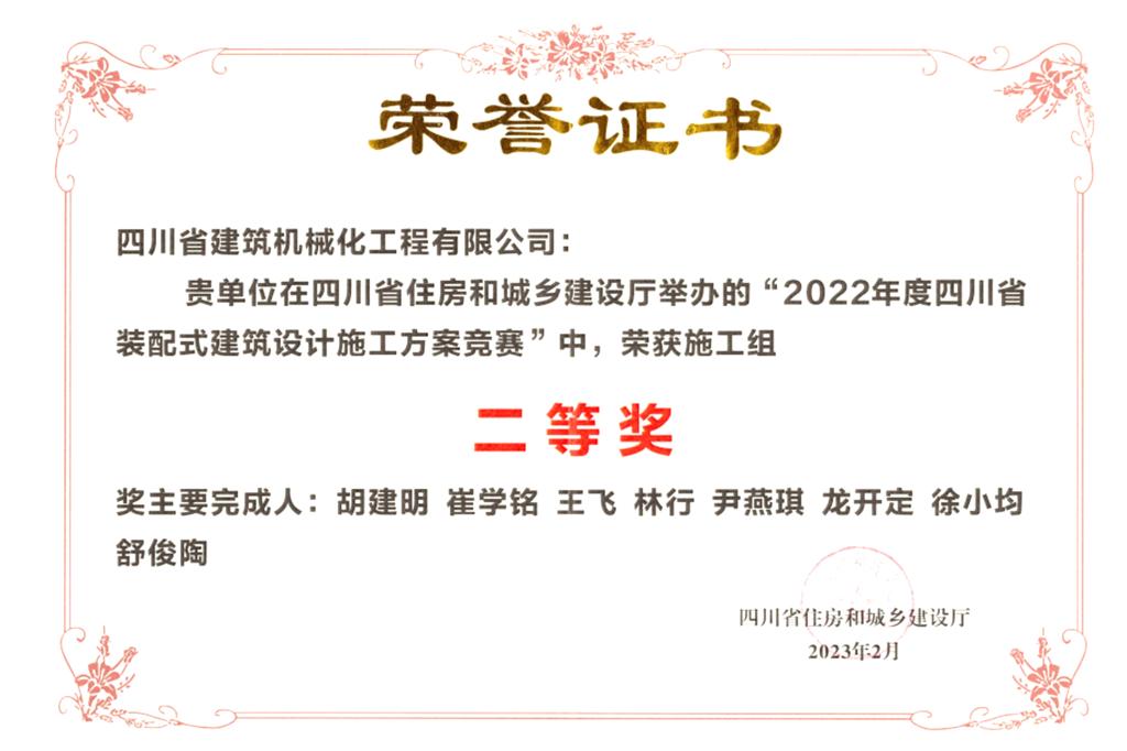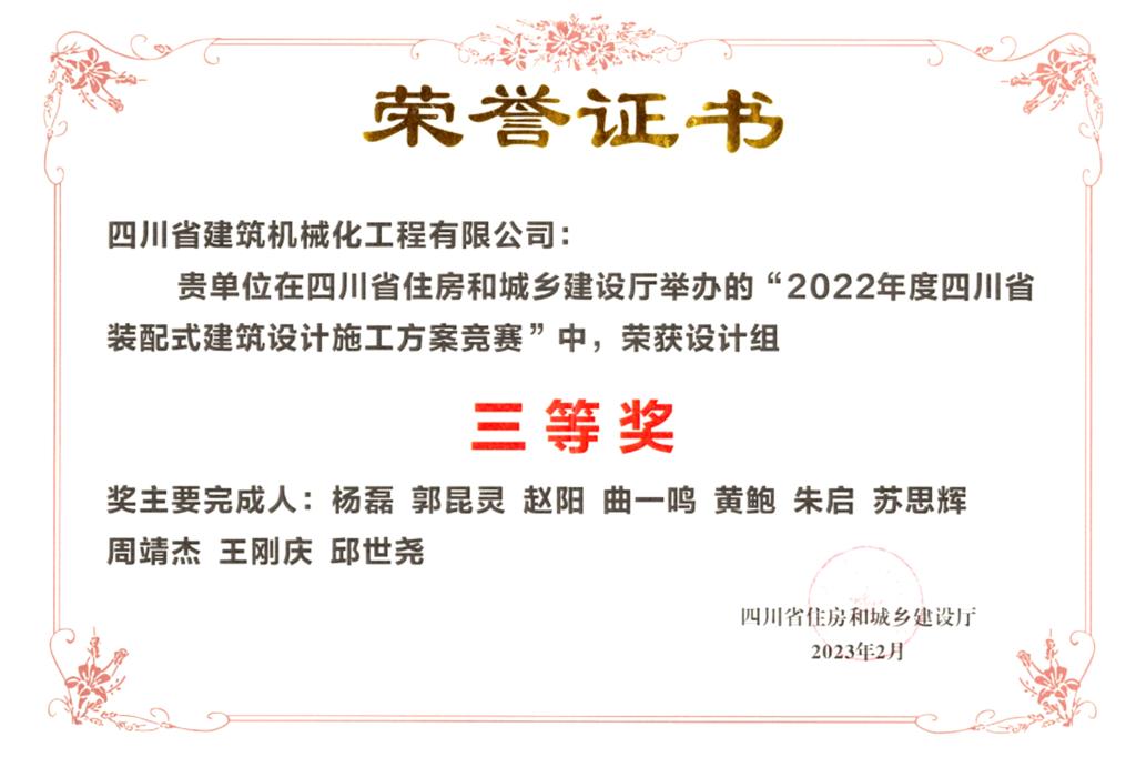 近日,“2022年四川省装配式建筑设计施工方案竞赛”获奖名单公布,四川机司代表队斩获四川省装配式方案竞赛施工组二等奖和设计组三等奖的佳绩。本次比赛由四川省住房和城乡建设厅组织、四川省装配式建筑产业协会承办,大赛吸引全省多家知名设计和施工企业参加。