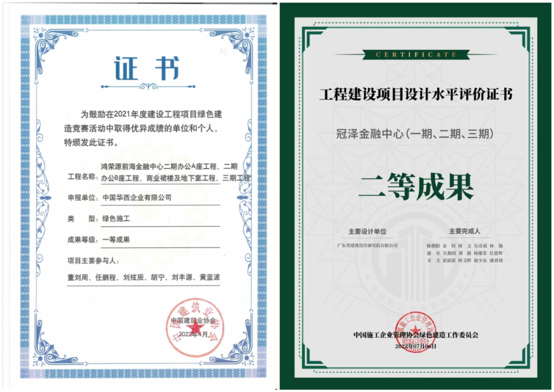 此前,深圳中华西前海冠泽金融中心项目二期办公A座已斩获第十四届中国钢结构金奖。同一项目,摘得“两金”,中国华西钢结构工程业务实力再获认可。