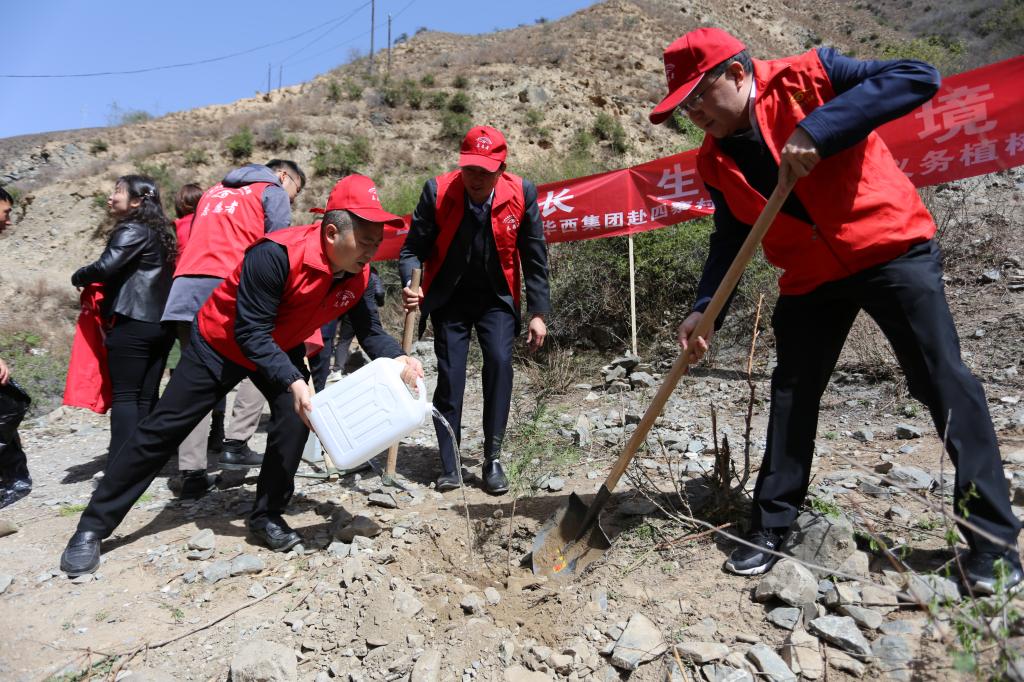 挥锄挖土,持苗提桶,去袋移植,覆土浇水……活动过程中,全体参与人员热情高涨,干劲十足,配合默契,经过一番辛勤劳动,一株株绿植错落有致,昂然挺立,参与人员种下树苗80余株,为美丽四寨村增添绿意。此次义务植树活动,进一步增强了党员干部爱绿护绿、保护生态环境的责任感和使命感,提升了四寨村生态文明建设。