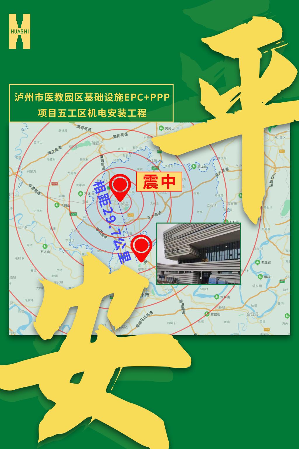 股份公司工程管理中心第一时间对集团在泸州建设项目进行安全排查。据悉,泸州在建项目共9个,其中泸州市医教园区基础设施EPC+PPP项目距离震中最近仅29.7公里,目前所有项目已报平安,暂无受损。