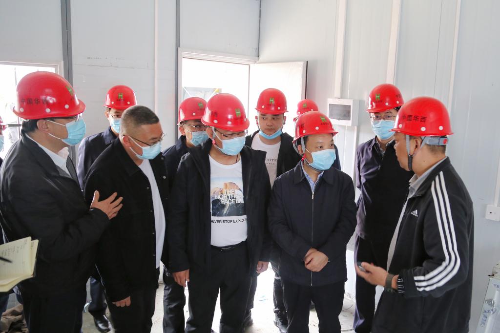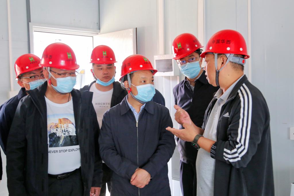 靳磊走进过渡安置房项目工区察看了项目整体建设情况,并径直走进已初步成型的安置房,实地察看了过渡安置房的结构、材质等,并详细询问了安置房的功能分区及每户房间容纳量、屋内设施配备、受灾群众拟安置人数及其未来用水、用电、排污等方面的生活设施配备情况。在调研过后,他对过渡安置房建设取得的成果给予了充分肯定,并希望华西集团要以更加严谨的态度,继续全力加快项目建设进度,按照工期时间节点确保磨西过渡安置房尽快交付使用。