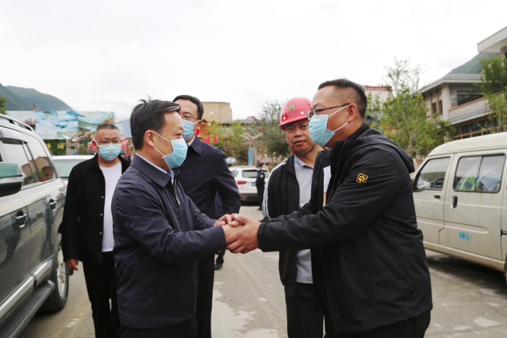 9月22日下午5时许,省委常委、省委政法委书记靳磊来到磨西镇,调研华西集团建设的泸定震后过渡安置房项目。集团副总经理汪涛同志作情况汇报。