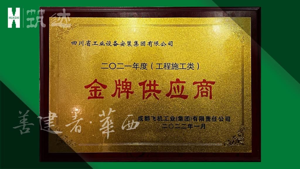 ▲四川安装获成飞集团“金牌供应商”荣誉