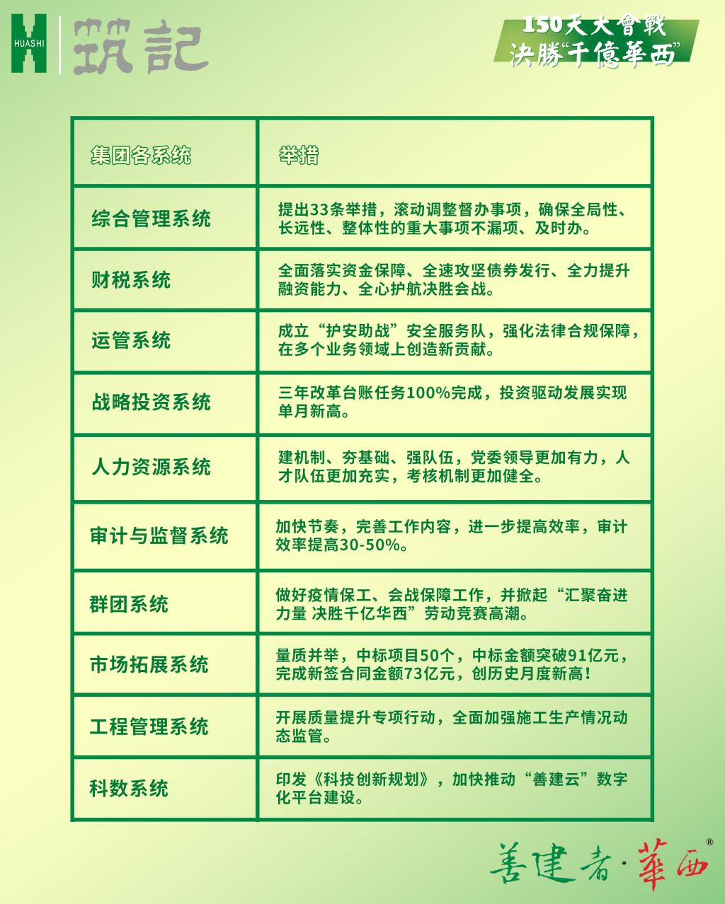 曾经构想的10年实现“千亿华西”,在我们这一代人手上,应以更紧迫,更昂扬的姿态,缩短缩短再缩短时间战线——两年干成10年的事,就在今年,实现“千亿华西”!这便是当前这一历史时期,摆在所有华西善建者面前的答卷。