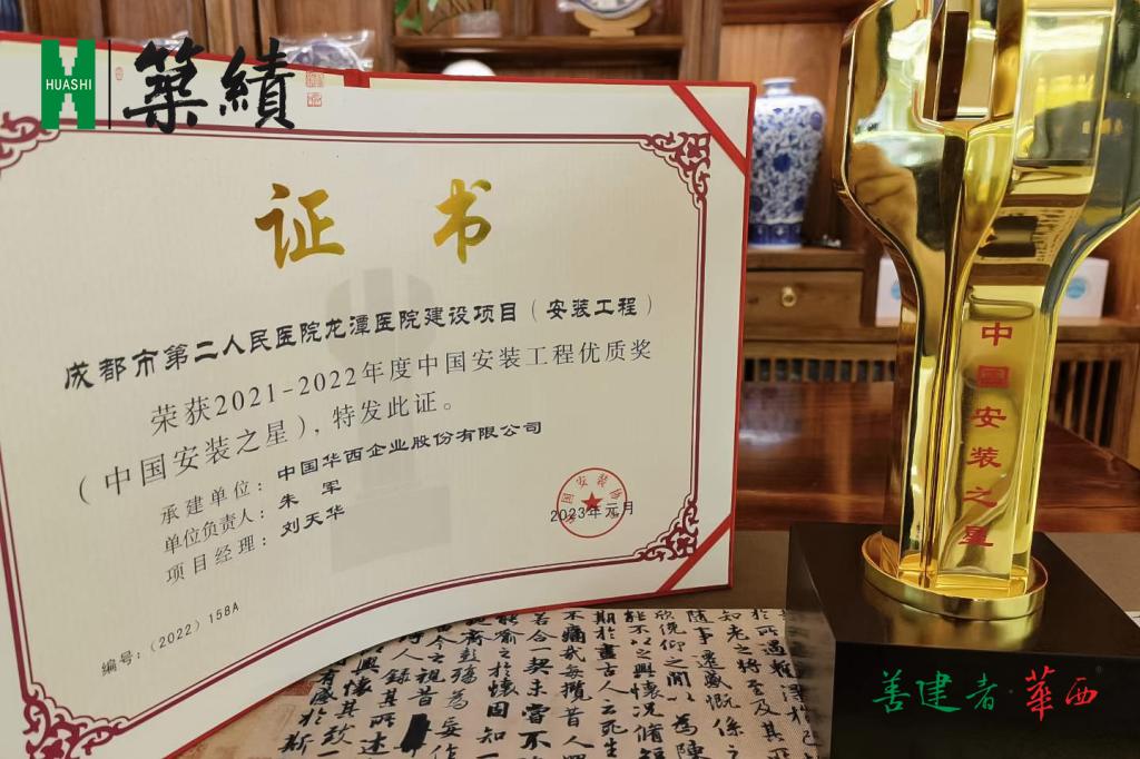 华西安装公司承建的成都市第二人民医院龙潭医院建设项目(安装工程)荣获“中国安装工程优质奖”(中国安装之星)