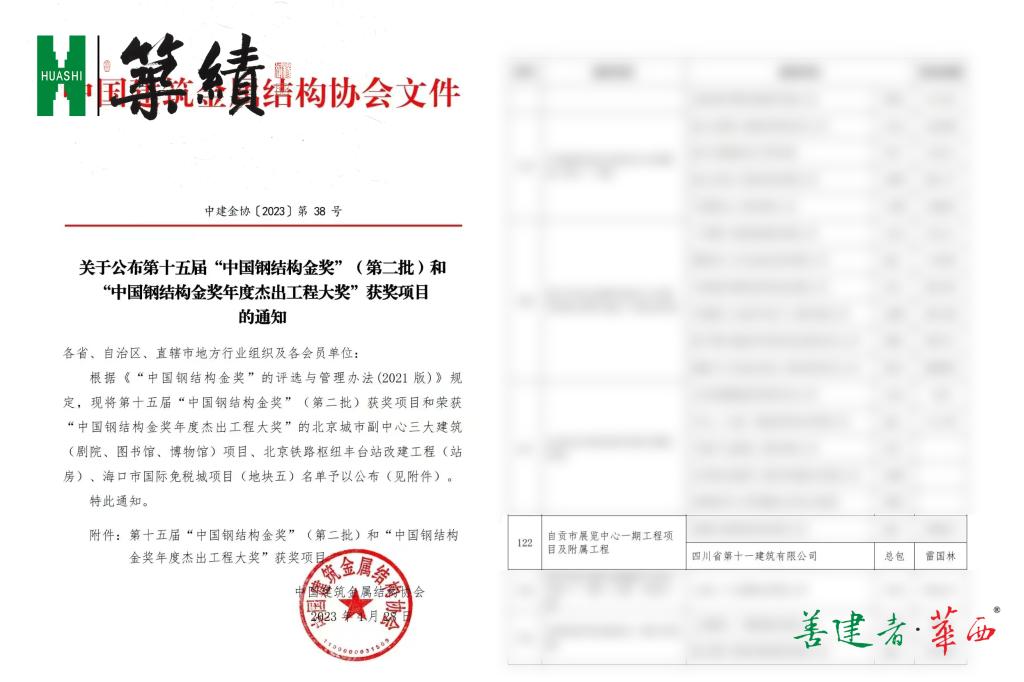 四川十一建自贡展览中心项目获“中国钢结构金奖”