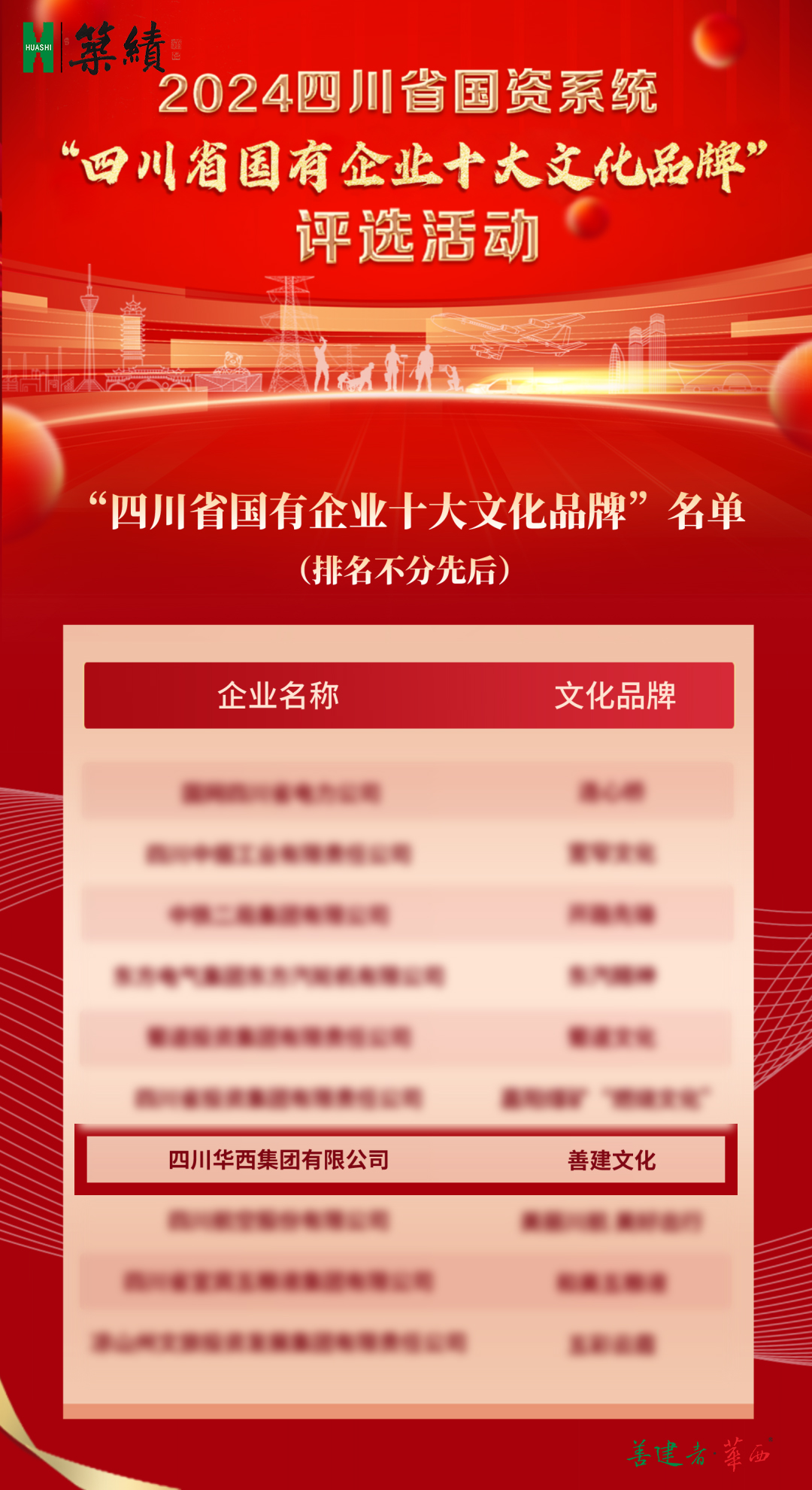 ▲华西集团“善建文化”获“四川省国有企业十大文化品牌”
