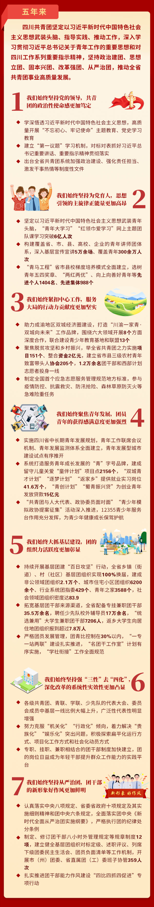 王晓晖指出,青年工作是党的一项战略性工作。全省各级团组织要把培养社会主义建设者和接班人作为根本任务,充分发挥桥梁纽带作用,不断提升共青团工作质效,组织动员广大青年积极投身实践、建功立业,在助推四川现代化建设中作出新的贡献。全省各级党委(党组)要从保证党的事业后继有人的战略高度,拿出极大精力抓实抓细青年工作。各级党组织要认真落实党建带团建制度机制,支持共青团组织更好发挥作用。