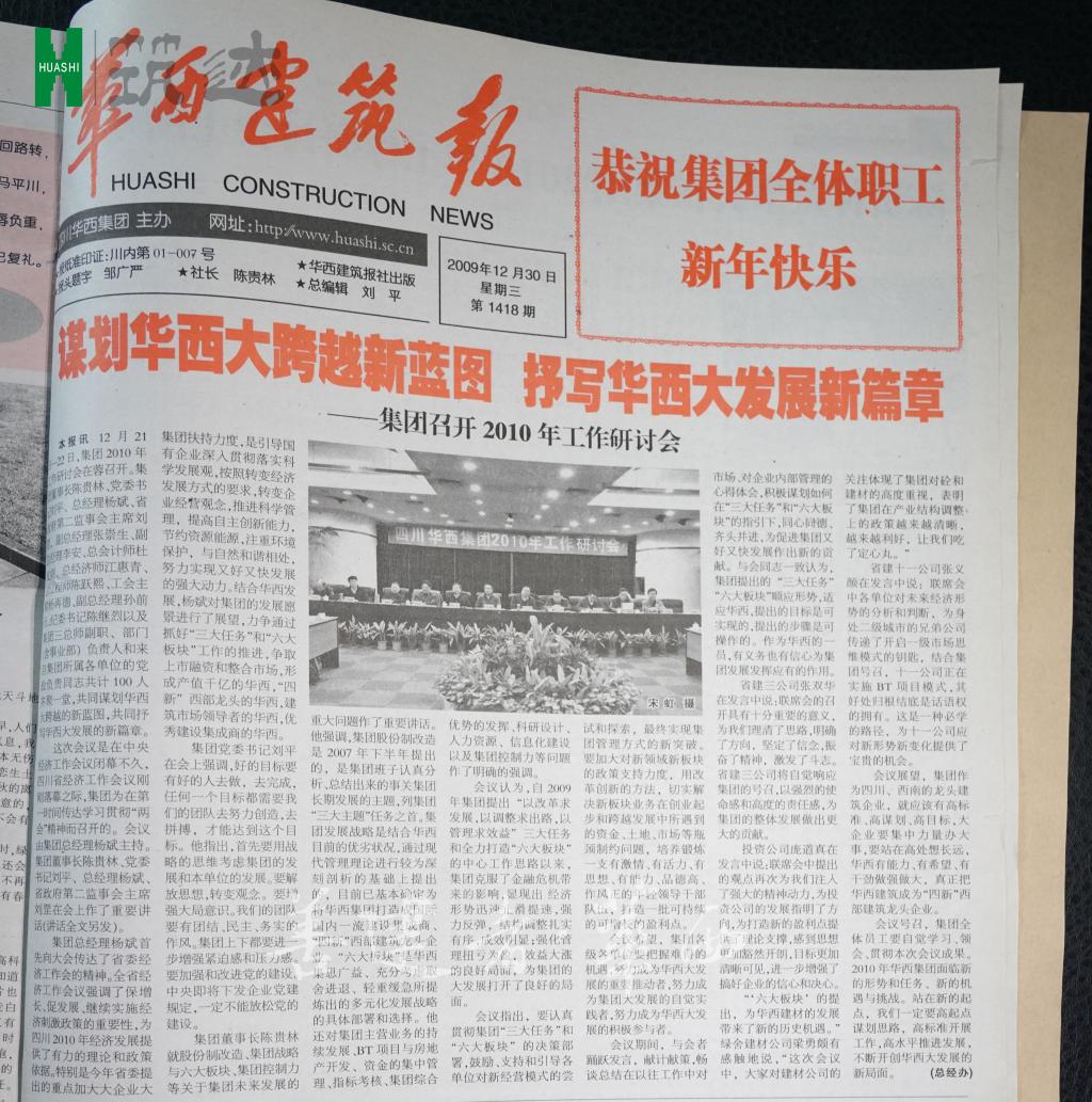 ▲《华西建筑报》2009年12月30日第1418期