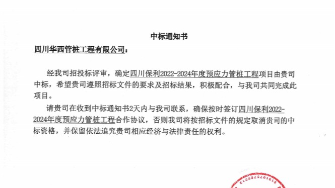 12月8日,华西绿舍下属子公司华西管桩传来捷报,成功中标四川保利2022-2024年度预应力管桩工程项目,中标金额达1.45亿元。这是继10月华西管桩成功中标空中客车飞机全生命周期服务项目的又一大喜讯。自2018年成为保利地产战略合作伙伴以来,华西管桩始终坚...