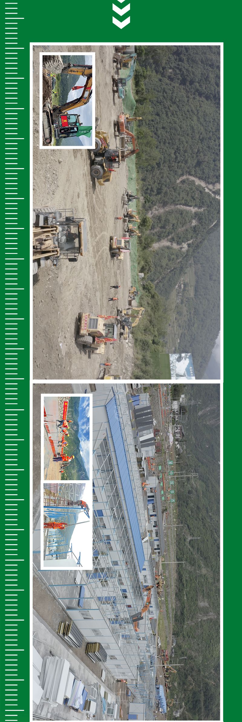 各二级单位主动请缨,火速驰援。正在灾区现场提供技术指导的股份工程设计公司就地转变职能,承担起项目建设的设计工作;参与现场救援的四川一建,迅速整队集合,就地转身投入项目建设;具有丰富高原施工经验,曾参与康定“11·22”地震灾后重建的四川机司闻令而动,迅速集结,投入战斗;华西集采成立服务小组,全力做好各项物资保障供应。